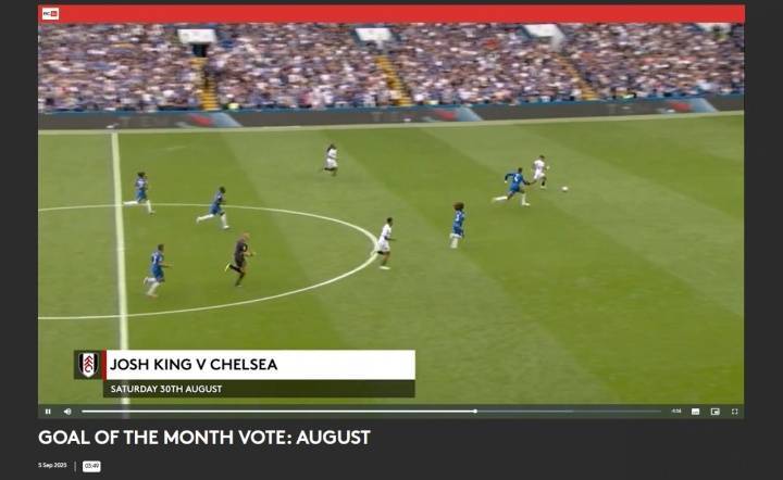 直播吧09月06日讯 富勒姆官方发布8月最佳进球投票,对阵切尔西被吹进球被列入候选。